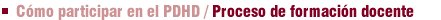 El PDHD ofrece un conjunto de talleres asociados a cada una de las competencias, y el profesor podrá participar en aquellos que desarrollan las capacidades que él necesita para ser competente. Los talleres están disponibles en la plataforma Blackboard para ser utilizados y se cuenta con profesores certificados como instructores de los mismos.